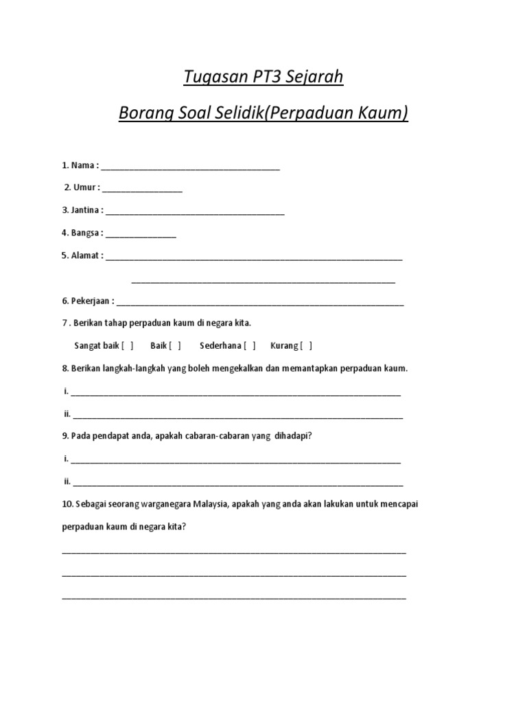 Borang Soal Selidik Pt3 Sejarah Pdf